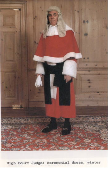 高等法院のすべてのジャッジは、同じ儀式用の衣装を着る。これは、膝ま